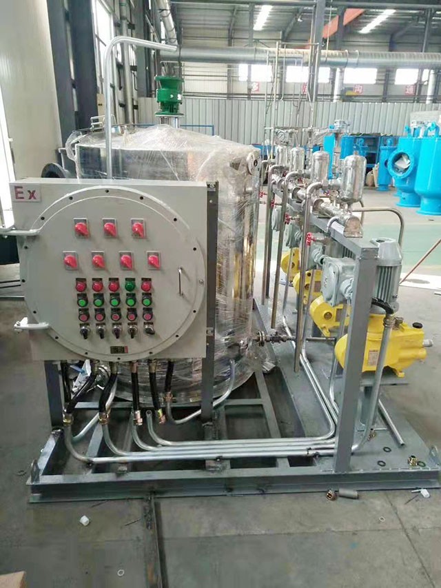 加藥系統(tǒng)是一套完整的設(shè)備,配料,混合,液體的輸送,在一個(gè)自動(dòng)控制,原水,水,油田鍋爐,廣泛應(yīng)用于發(fā)電廠集輸脫水處理系統(tǒng),石油化工各種加藥系統(tǒng)和廢水處理系統(tǒng)。作為混凝劑,磷酸鹽,氨,石灰水,緩蝕劑,阻垢劑,劑等。加藥裝置主要由攪拌罐,溶液箱,計(jì)量泵,管道閥門(mén),在機(jī)電一體化設(shè)備電氣控制柜組合平臺(tái)。
